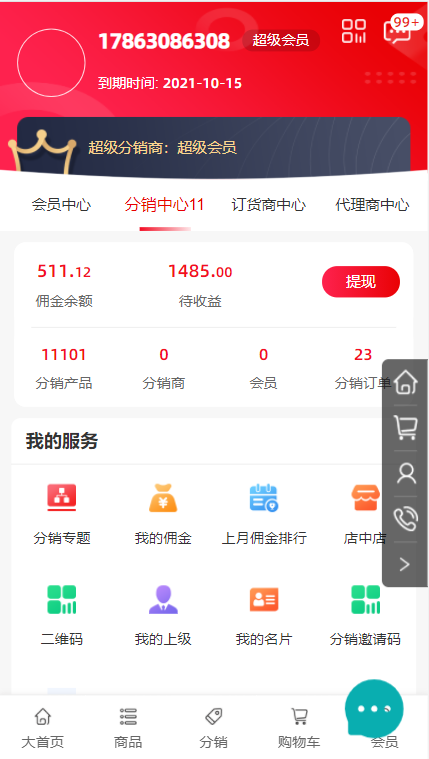 用戶場景:優(yōu)化代理商管理后臺,便于代理商管理自己的分銷商和會員;