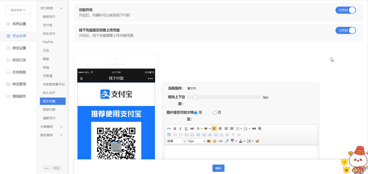 (1)線下付款開通功能開關(guān),并上傳圖片;
