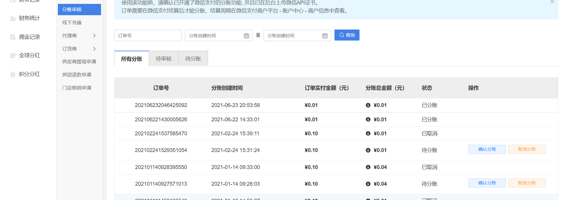 現(xiàn)邏輯:小程序商城需要對接微信分賬;