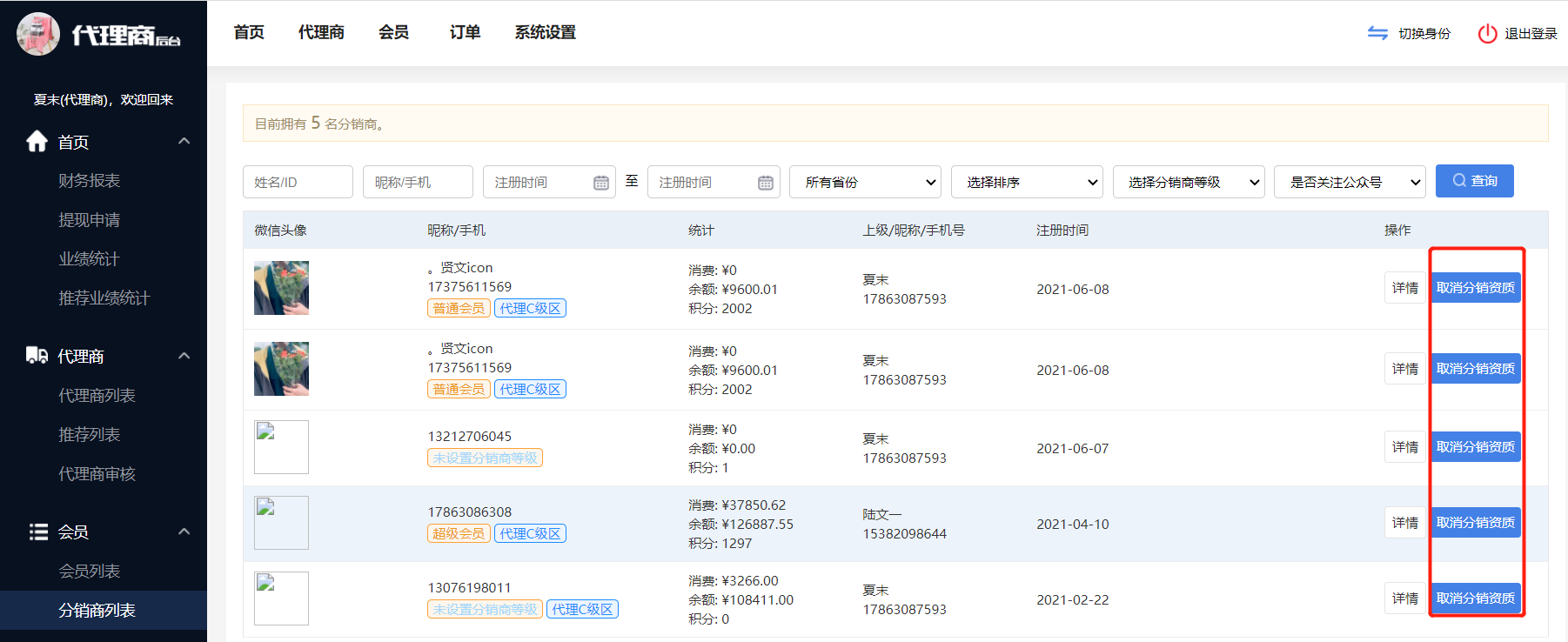 原邏輯:不能調(diào)整會員的分銷商資質(zhì),不能管理會員等級;