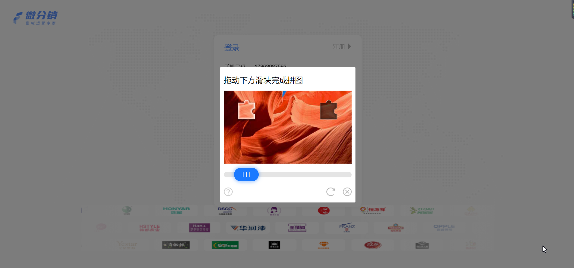 (3)滑動滑動驗證碼正確后,登錄成功;
