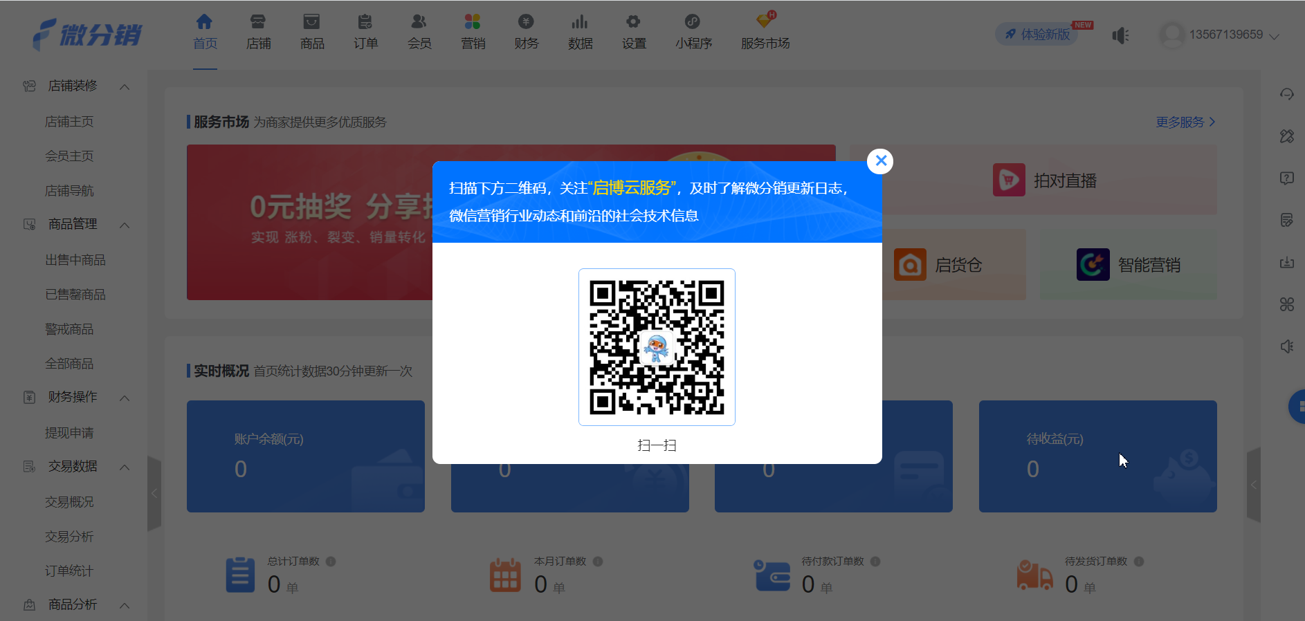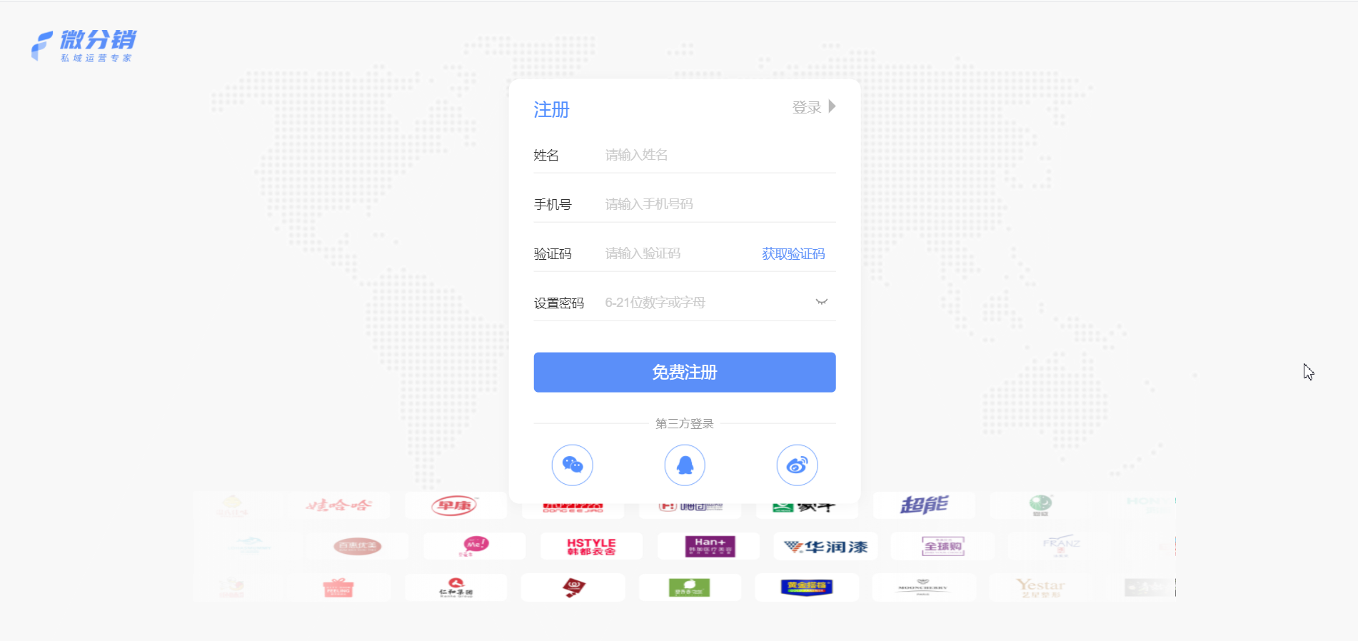 (5)注冊成功后跳轉(zhuǎn)至微分銷首頁;