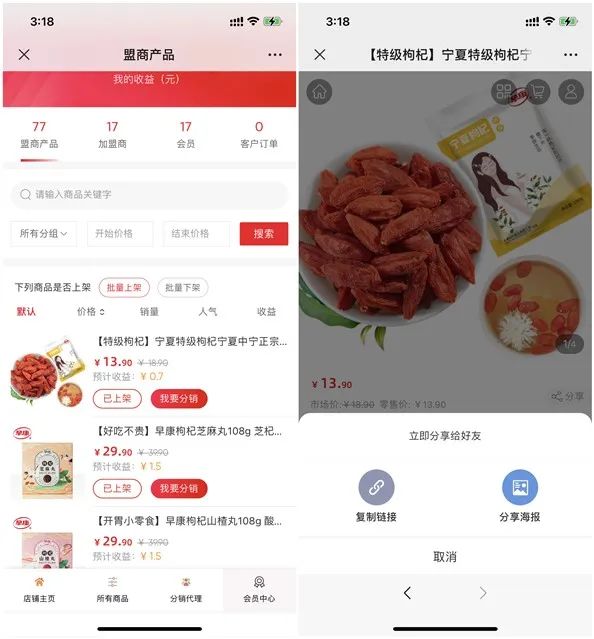 「早康枸杞」布局線上微商城后,搭建商城分銷體系,實現一店變千萬店:會員突破10w+;日成交量突破50w+單;月銷售額突破2000w!