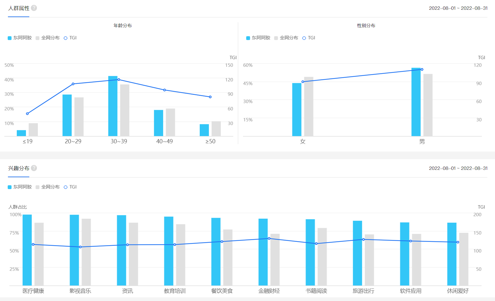 隨著工作生活節奏加快,當代年輕群體普遍呈現亞健康的身體狀態。性別分布上偏重于男性,但女性用戶群體占有率也達到了45%,30-39歲男女客群,工作和生活壓力大,更加關注身體的健康與保養,保健品消費的比重會慢慢呈現出現上升的趨勢。