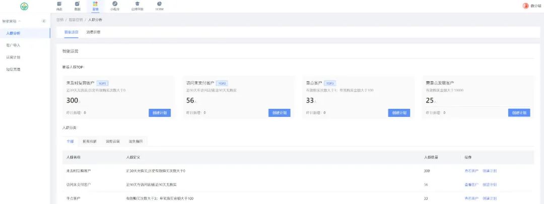 啟博智能營銷SCRM功能,對客戶從進店-逛店-購物-離店整體消費情況一目了然,商家可以根據數據看板快速定位目標用戶群體,制定召回策略,實現精細化運營。