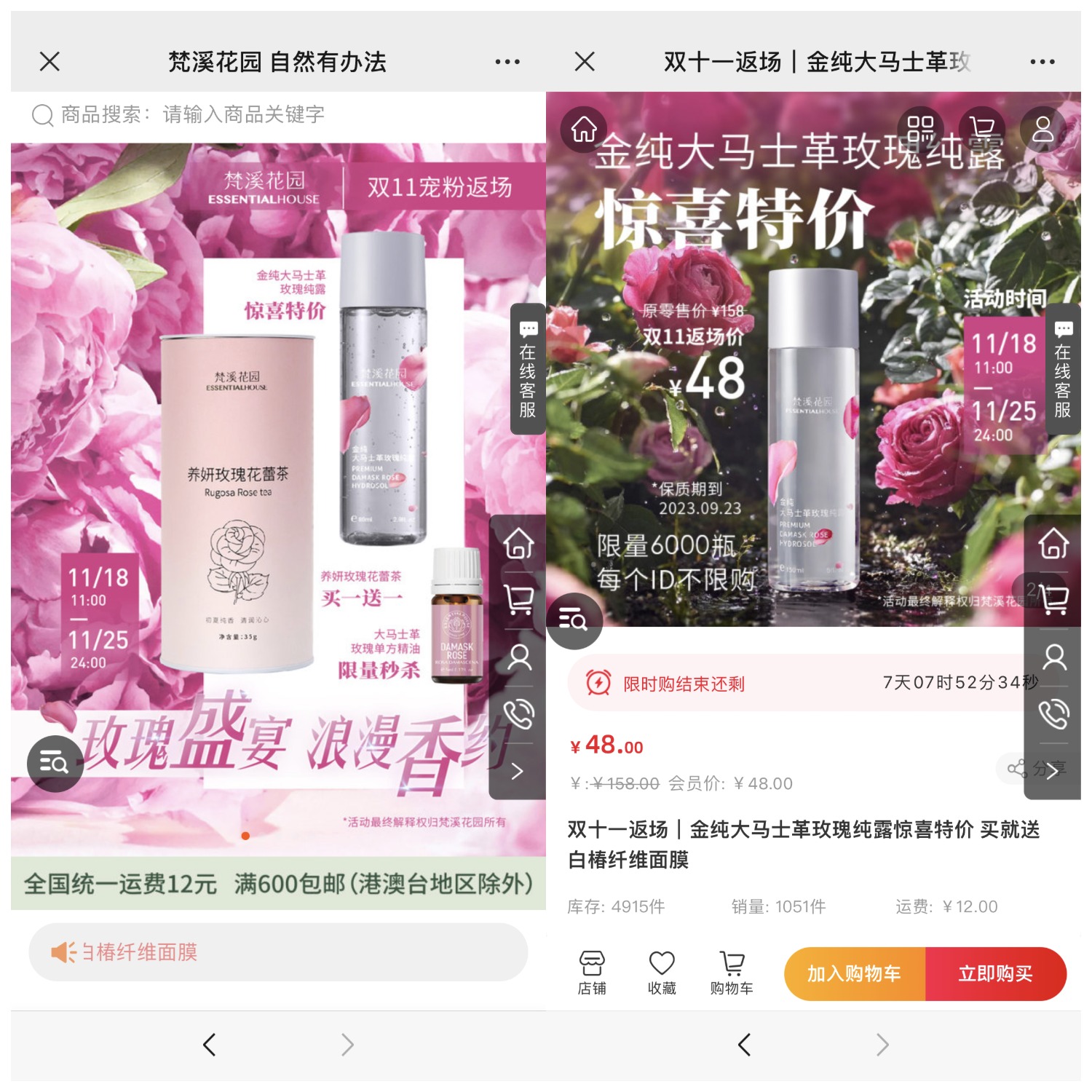 11月18日11:00梵溪花園微商城同時開啟三組雙11返場活動: