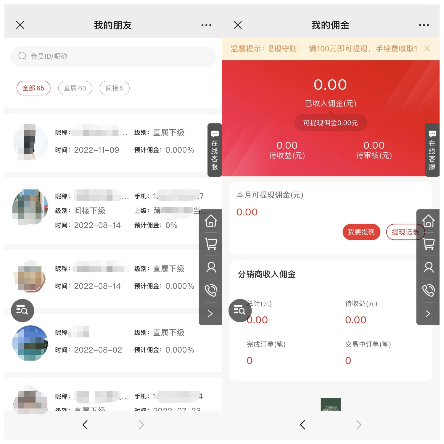 當會員分享梵溪花園微商城到社群、朋友圈、好友等場景后,引導其他用戶進入微商城,這樣就發展了自己的直屬下級,也可以發展間接下級,只需要直屬下級再次分享微商城給自己好友并引導好友進入微商城,當有用戶下單收貨成功后即可獲得傭金,傭金可以提現到微信錢包,就這樣層層裂變,不斷擴大商城的會員的規模。