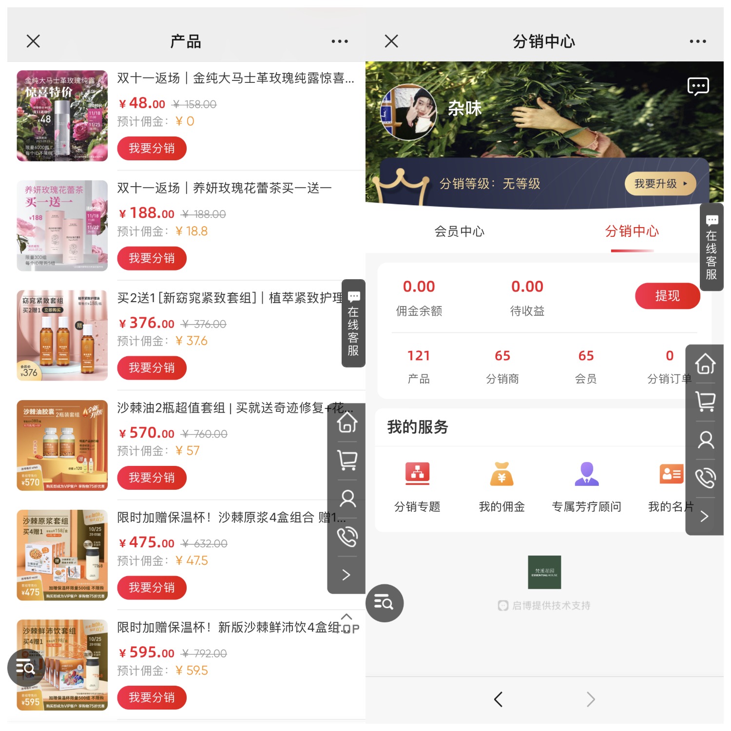 在梵溪花園微商城分銷中心,共有121件商品參與分銷,傭金高達10%左右,高昂的傭金激勵分銷員們不斷分銷微商城內商品,帶來更多的會員、分銷商及訂單。