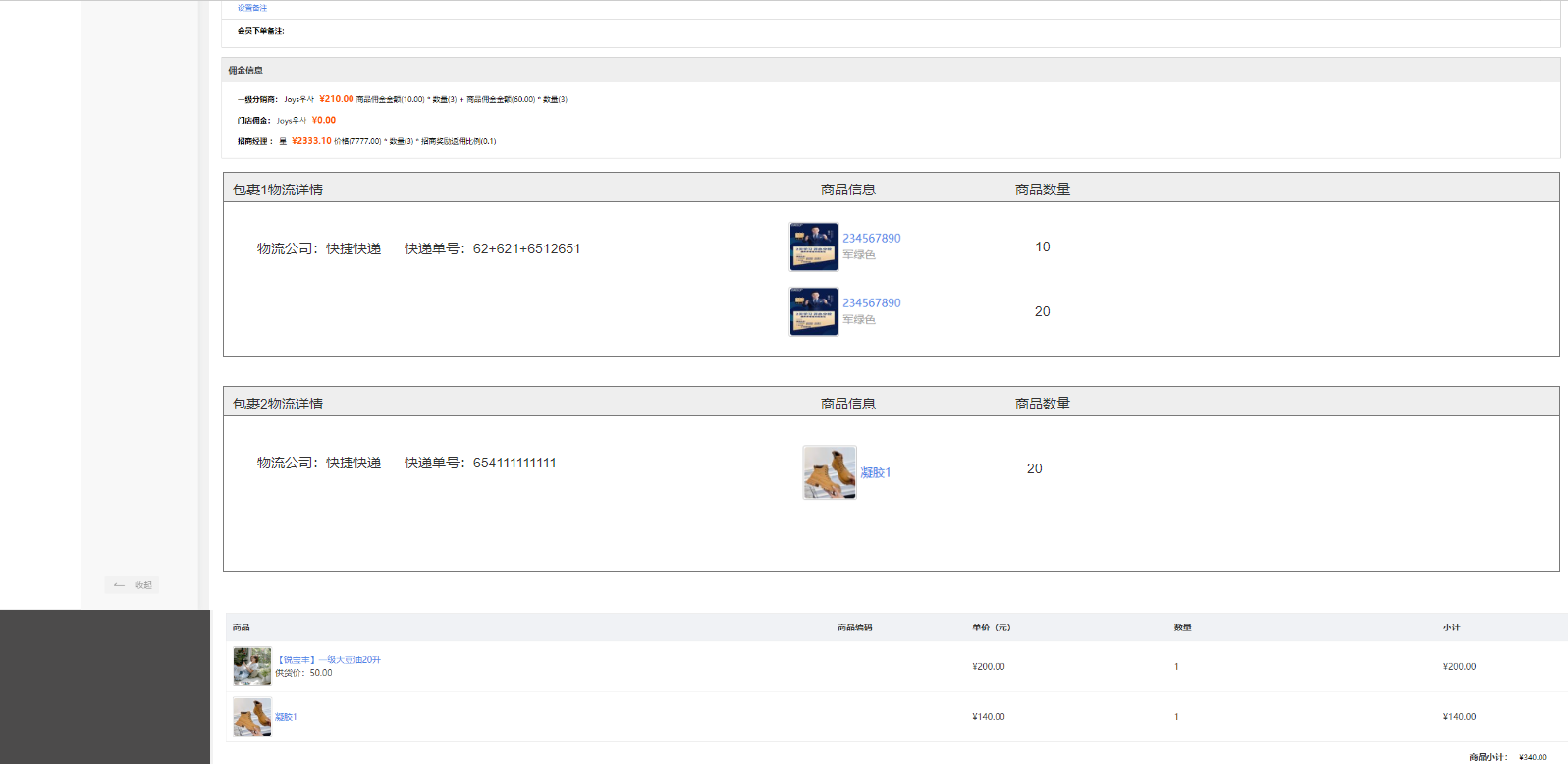 單筆訂單分包裹發貨后,訂單詳情展示的物流信息沒有展示相關發貨商品。