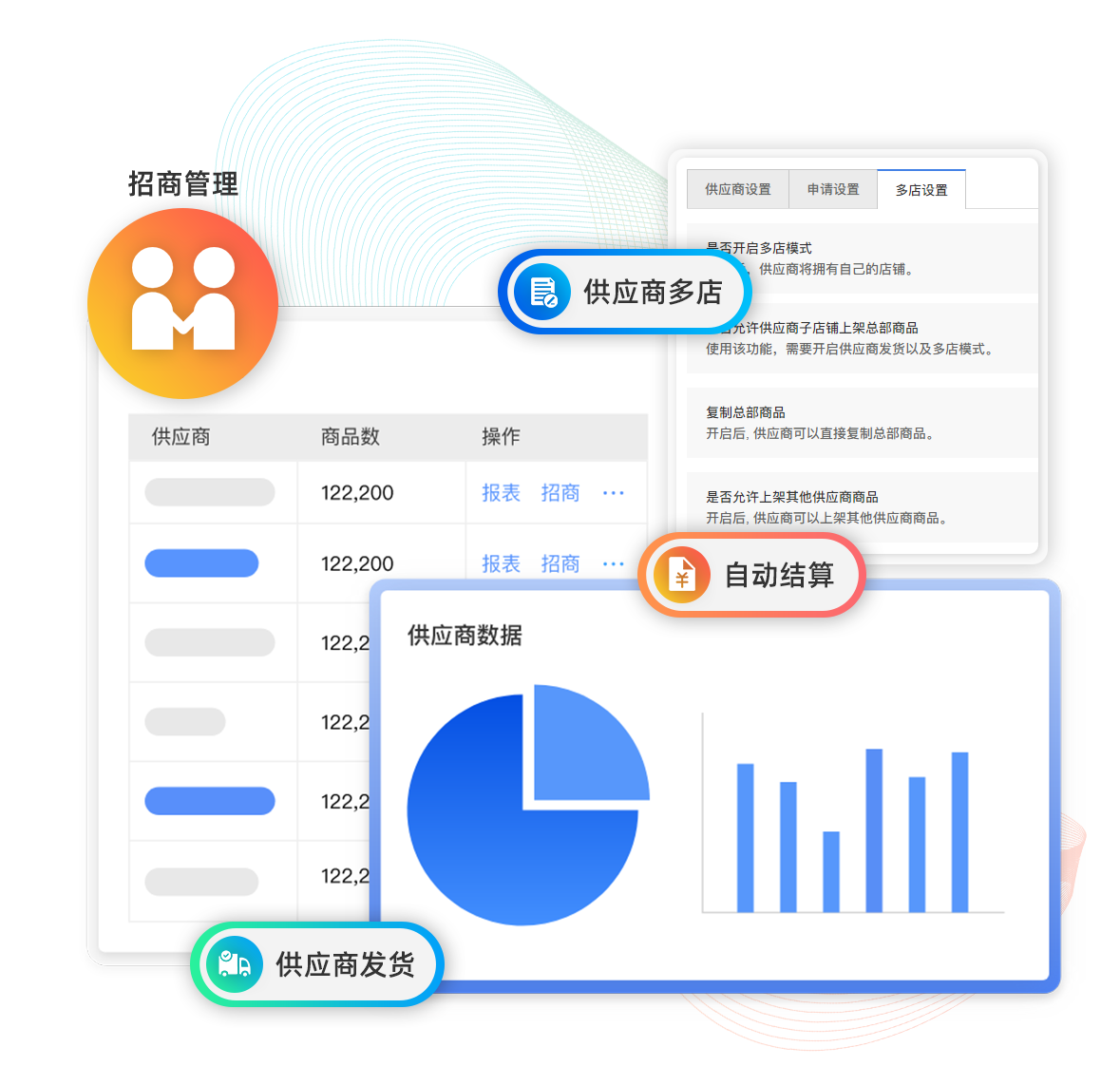 供應商、訂貨商模式快速打造平臺運營模式,多供應商入駐,支持供應商發貨,分賬自動結