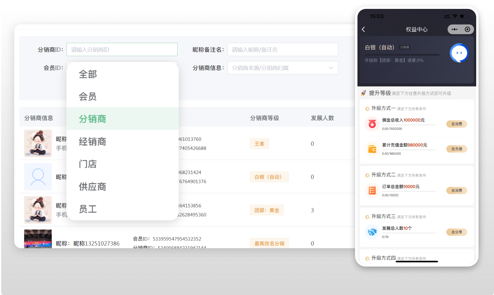 二級分銷營銷工具,通過傭金刺激+推廣員邀請+異業分銷+業績激勵+社交裂變等多種分銷模式,為商家招募更多會員作為推廣員,實現產品快速裂變,增加銷量!