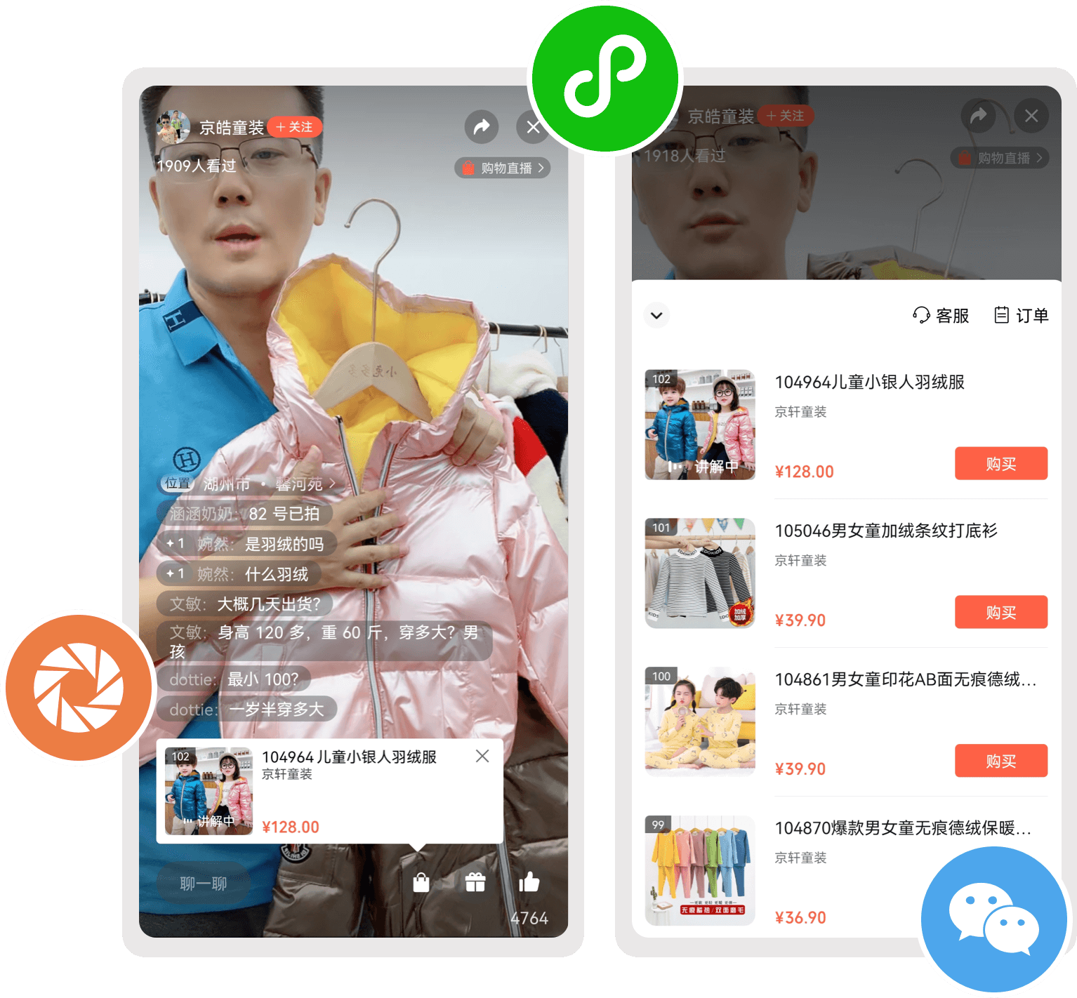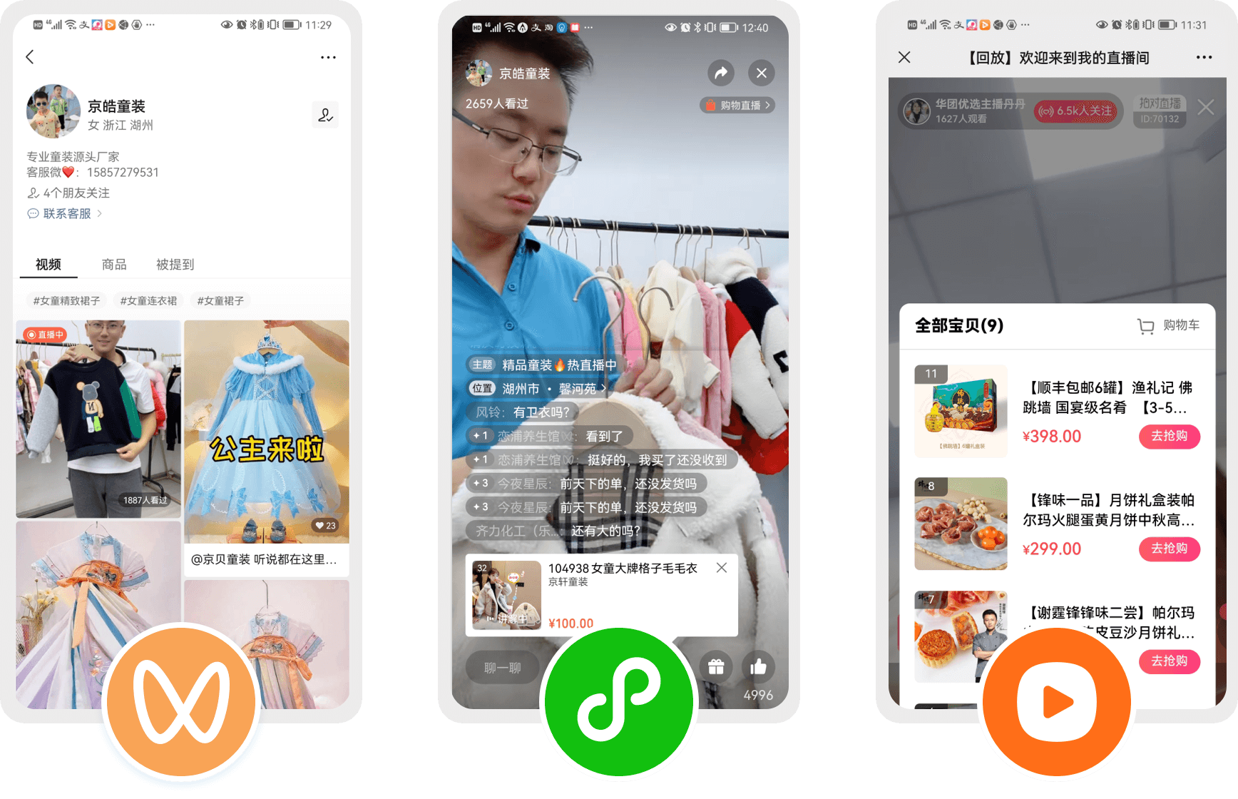 快速直播,全網(wǎng)賣貨公眾號、小程序、微信群、朋友圈等多個渠道預熱,即看即買 -