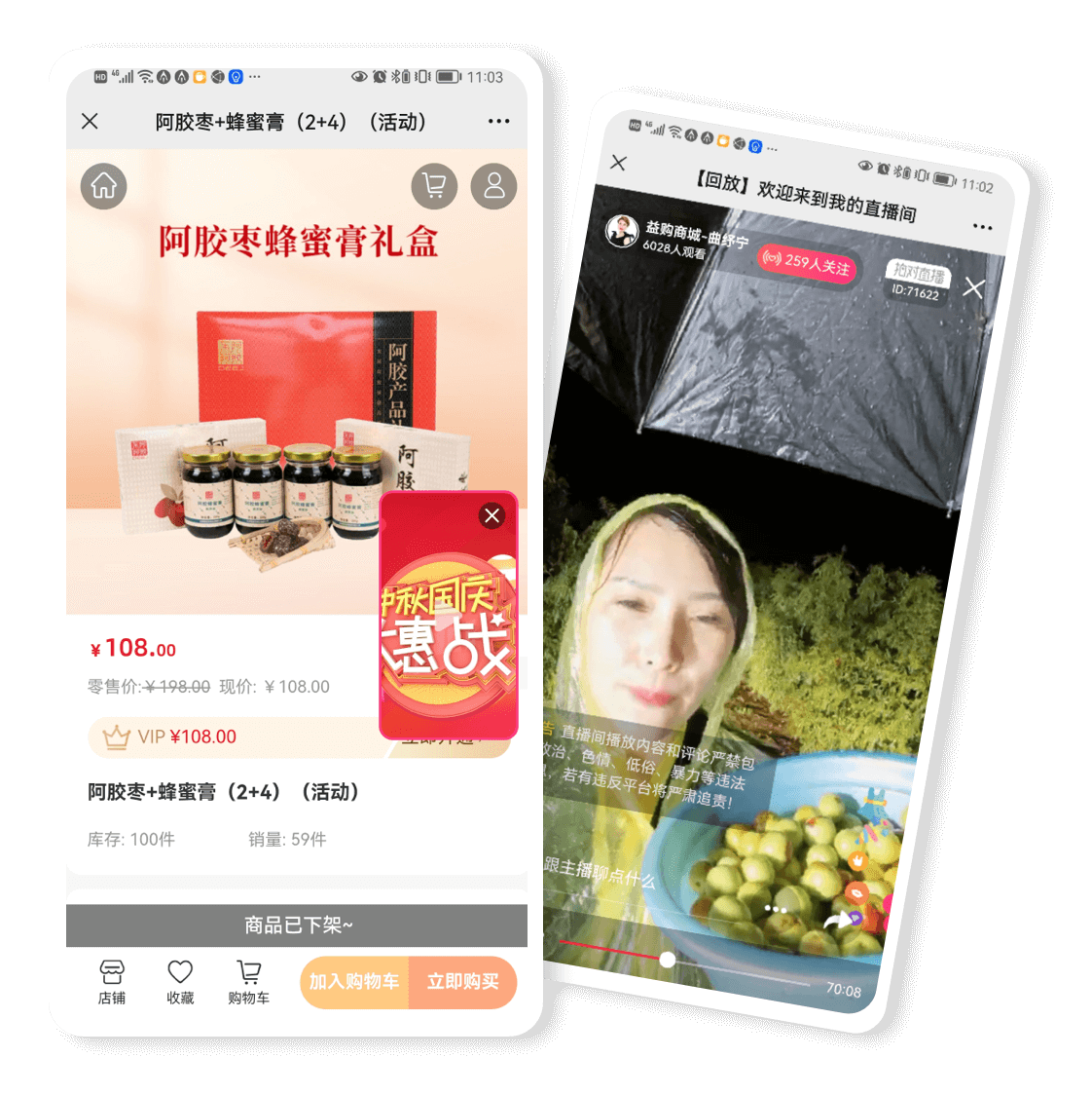 小程序商城引流促成交直播為小程序商城引流,直播賣貨,無需外跳直接購買,提升轉化 -