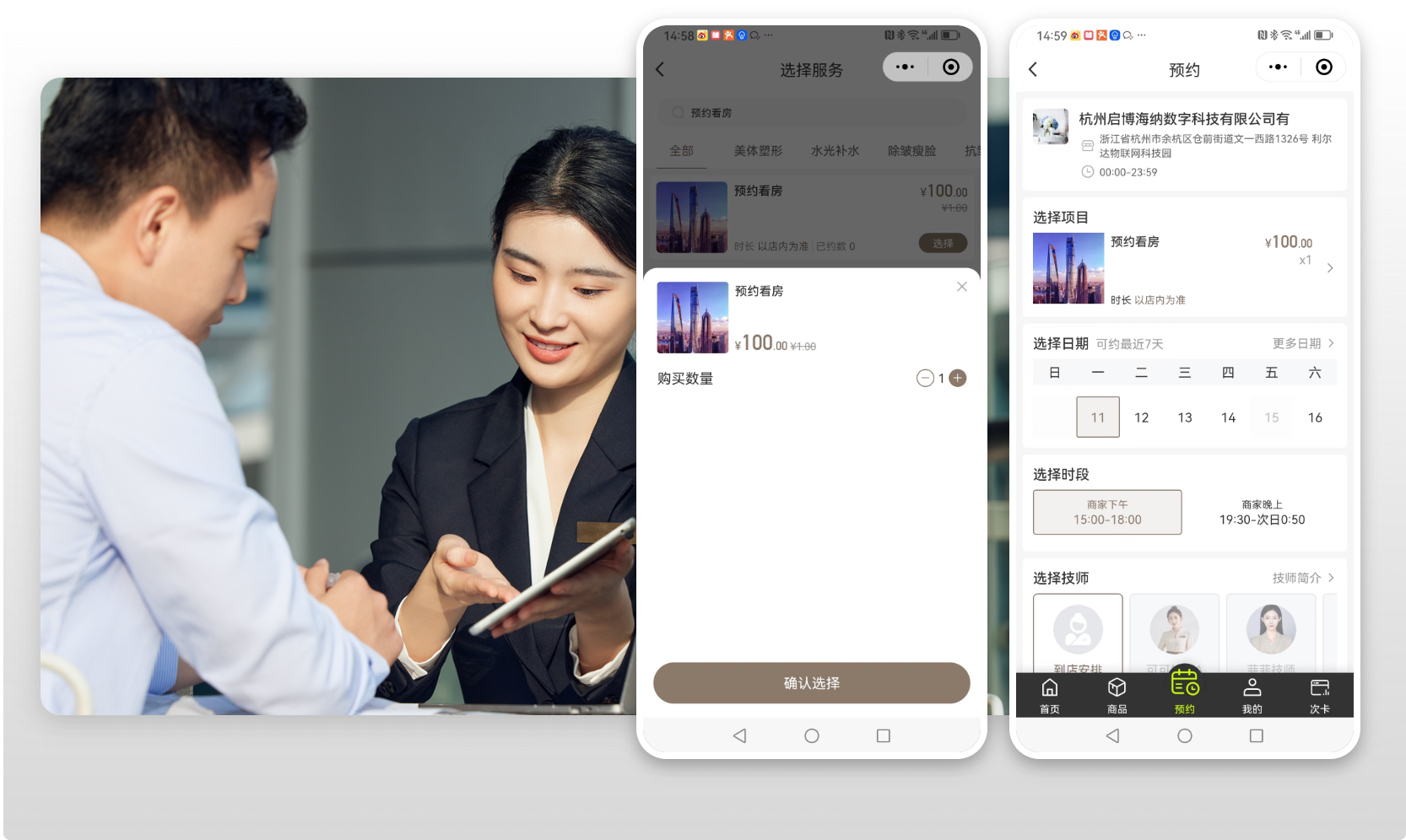 用戶可以通過微信小程序預約看房時間,高效快捷,方便售房服務人靈活安排看房時間,避免線下排隊等待的麻煩。微信服務通知實時觸達用戶,提升用戶到店率與看房體驗。
